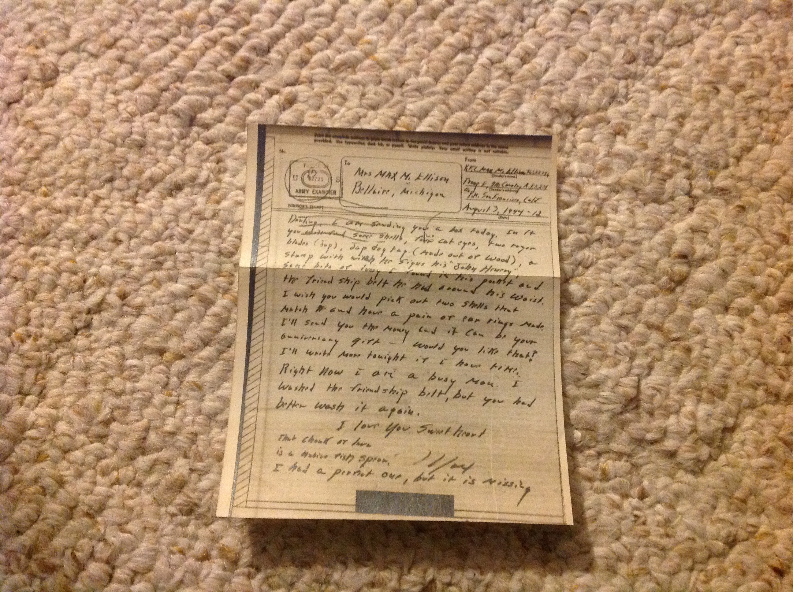 Letters To My Mother From WWII: August 10-17, 1944
